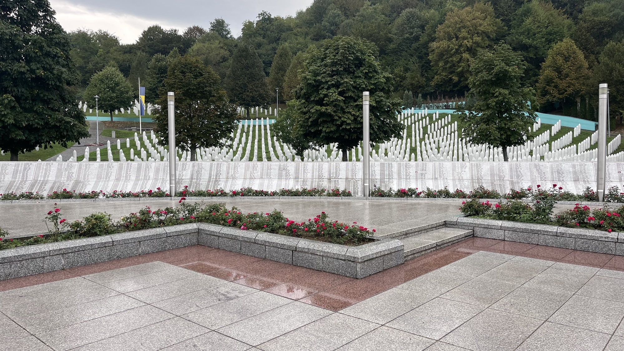 Původně jsme si říkali, že pojedeme ještě dále a více si prohlédneme památník a přilehlé stavby, avšak prší, Jimbovi je blbě a navíc všichni mrtví byli muslimové a my hlavami do koberců nemlátíme.